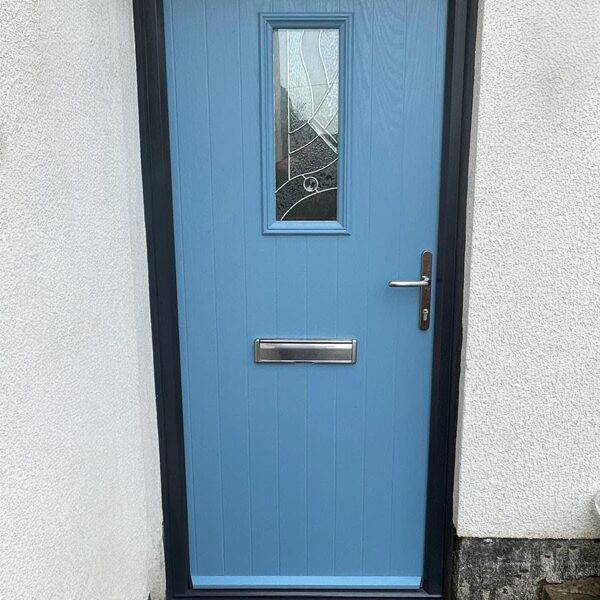 Door-Stop Duck Egg Blue Composite Door installed for the Hobbys' in Llanfoist -