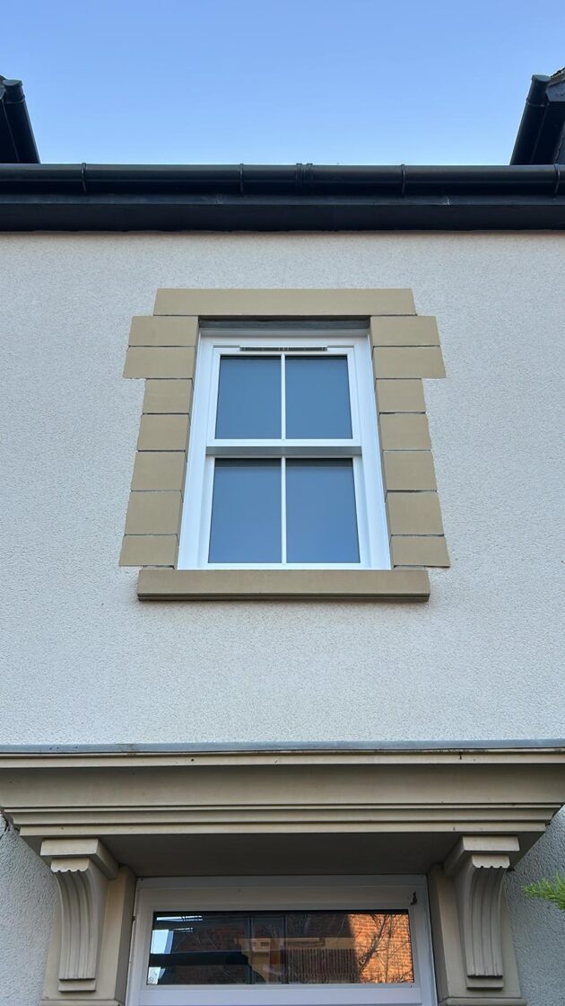 PVCu sliding sash windows are notoriously difficult to work with when it comes to bending profiles and we’re therefore very proud to be able to offer the only true arched PVC sash window in the country with no welded joints in the frame